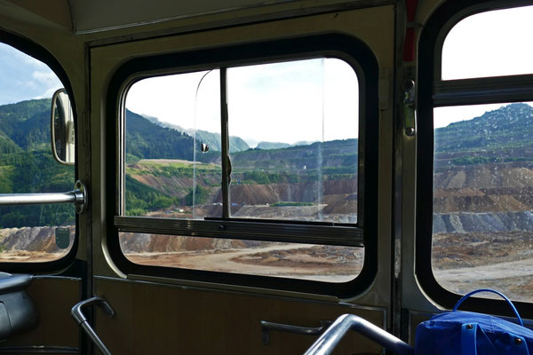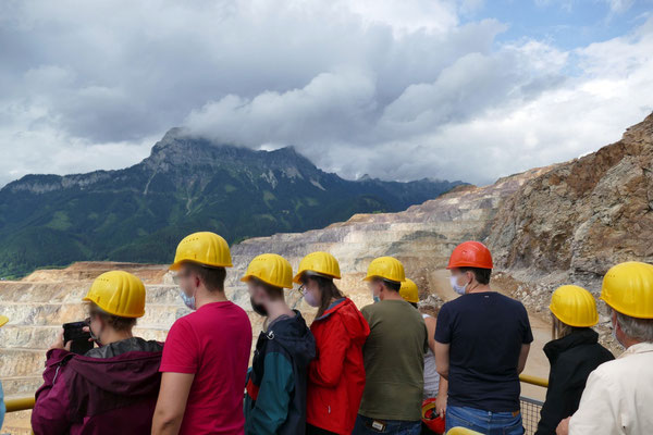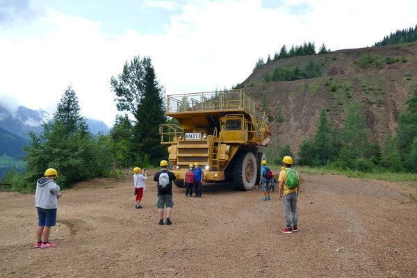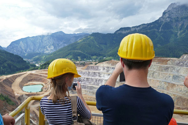 Die Tour 1 startete mit dem Oldtimerbus durch den altehrwürdigen Markt Vordernberg und lieferte über die Hangbrücken der Präbichl-Passstraße sowie vom Parkplatz „Erzbergblick“ eindrucksvolle Perspektiven auf den Erzberg, um ab der Talstation von Abenteuer Erzberg mit dem Hauly über die Terrassen des Erzberg mitten durchs Bergbaugebiet und einzigartigen Panoramablicken zu fahren und den Bahnhof Erzberg zu erreichen.