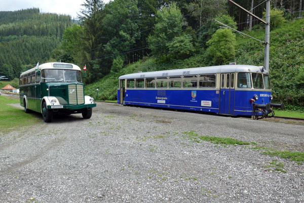 Dort begegneten sich die beiden Touren, Erzbergbahn und Hauly tauschten die Fahrgäste und nach einem kleinen Aufenthalt ging es auf dem Weg der anderen Tour zurück zum Bahnhof Vordernberg Markt.