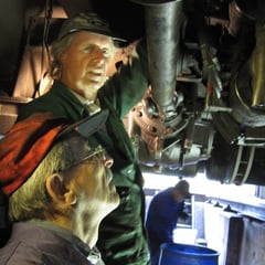 Die Spannung stieg als Wolfgang sich an das Steuerpult setzte und den Motor vorglühte. Ein, zwei Umdrehungen und der Motor sprang ohne Probleme an. Erleichterung. Kurze Probefahrt. Gute Leistung und dem Trend der Zeit folgend, der 65 er raucht nicht mehr.