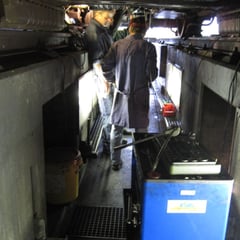 Am Freitag den 30. August und Samstag den 31. August war das Heizhaus stark besetzt. Der 565,das motorisch schwächste Fahrzeug unserer Triebwagenflotte, mit wenig Leistung, starker Rauchentwicklung und hohem Dieselverbrauch wurde auf der Montagegrube 4 einer Motorreparatur unterzogen. Wie schon berichtet hatte der 2. Zylinder viel zu wenig Kompressionsdruck. Nach Abnahme des Zylinderkopfes waren die tiefen Riefen in der Zylinderbüchse deutlich zu sehen. Es war also notwendig die Zylinderbüchse und den Kolben zu tauschen. Bei eingebautem Motor ist das gar nicht so einfach. Um die Ölwanne entfernen zu können war es notwendig Lichtmaschinen, Starter und Wasserpumpe, nebst anderen Bauelementen abzubauen. Das mit Frostschutz versehene Kühlwasser und das Motoröl wurde abgelassen und aufgefangen. So viel wir wissen wurde so eine Reparatur, zumindest in den letzten Jahren, noch nie durchgeführt.