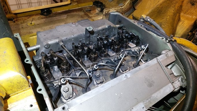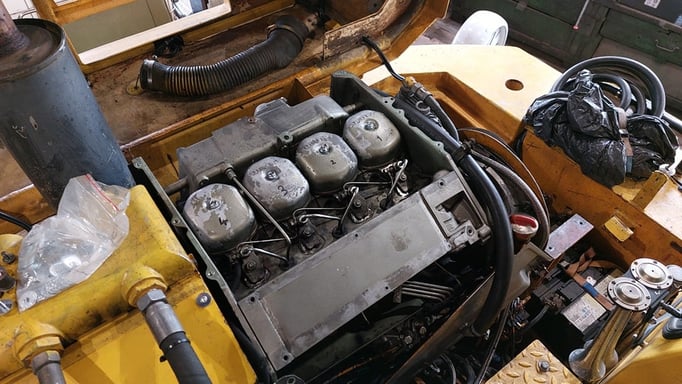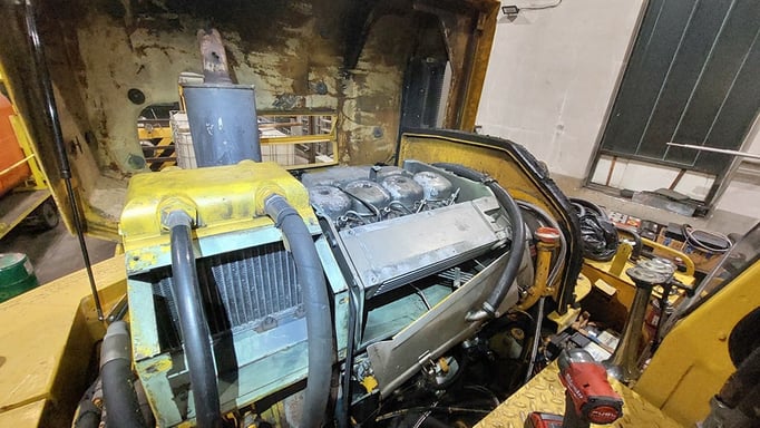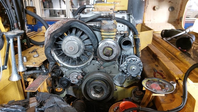 Undichtigkeit beim Gebläse-Luft-gekühlten Deutz-Motor einiges an Motoröl am Motor und in den Kühlern verteilte.