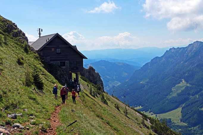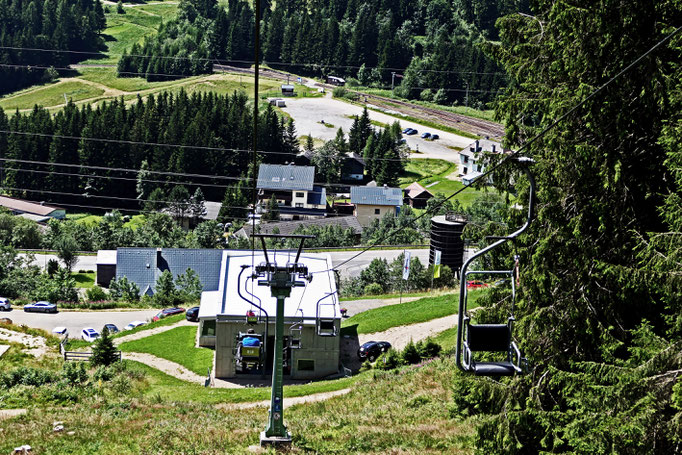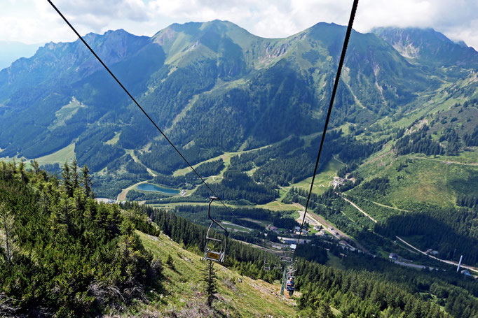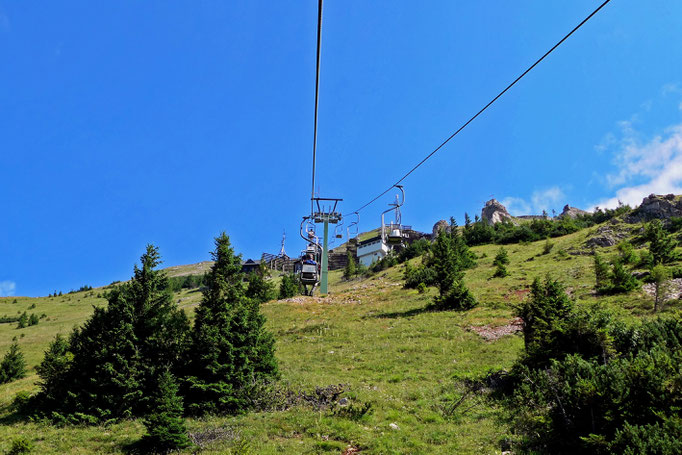 Von hier an ging es für die Teilnehmer des Zusatzangebotes mit einer geführten Wanderung zur Talstation des "Einsers" und von dort aus nun stilecht mit den "alten Sesseln" auf eine Seehöhe von