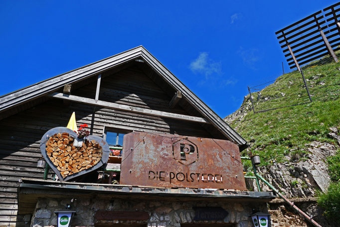 Oben angekommen standen mehrere Möglichkeiten zur Auswahl: Entweder hinauf auf das Gipfelkreuz und die Wanderwege rundherum auskosten, eine kulinarische Einkehr in die Polsterschutzhütte und/oder