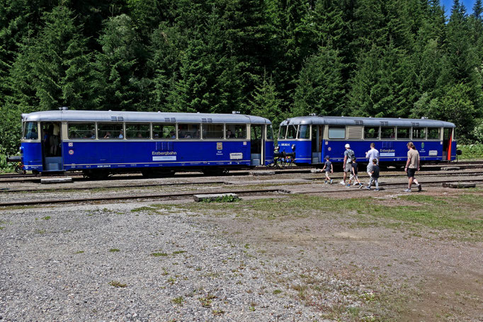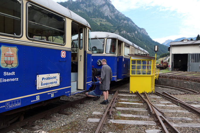 Da am Sonntag, dem 19. Juli, aufgrund des "Dirtruns" am Erzberg die Hauly-Fahrt nicht stattfinden konnte, haben wir uns etwas neues für die Bergfexen und Nostalgiker unter Euch überlegt. Als Zusatzangebot zur normalen Planfahrt ging es wie gewohnt um 10:00 Uhr vom Bahnhof Vordernberg Markt aus mit dem Oldtimer-Schienenbus bis zum Bahnhof Präbichl.